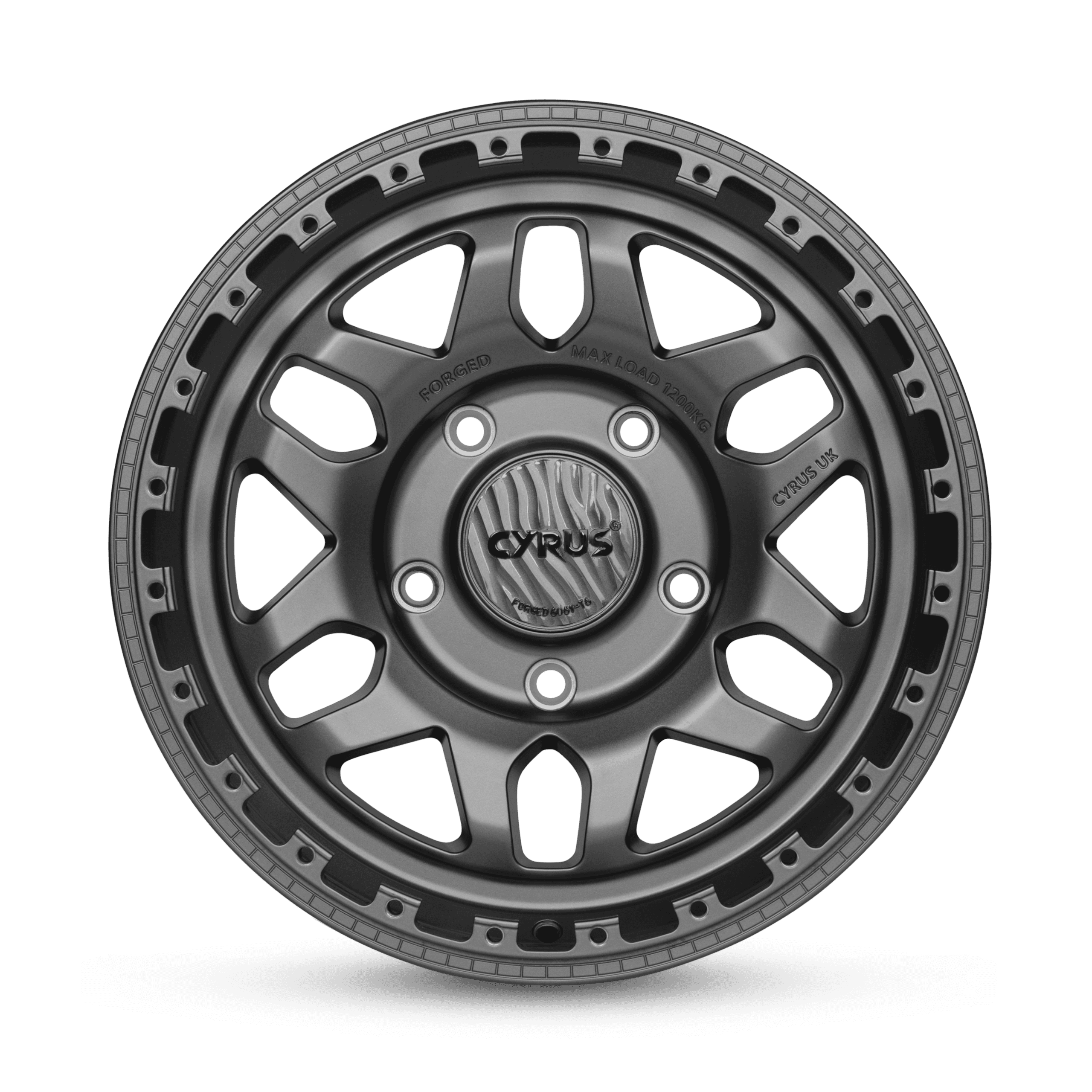 The VELTOX wheel features a durable two-piece forged construction with a dynamic multi-spoke design and a brushed aluminum face in exclusive CYRUS finishes. A multi-screwed outer ring enhances beadlock performance, while the bolt-on cap provides maximum hub clearance.