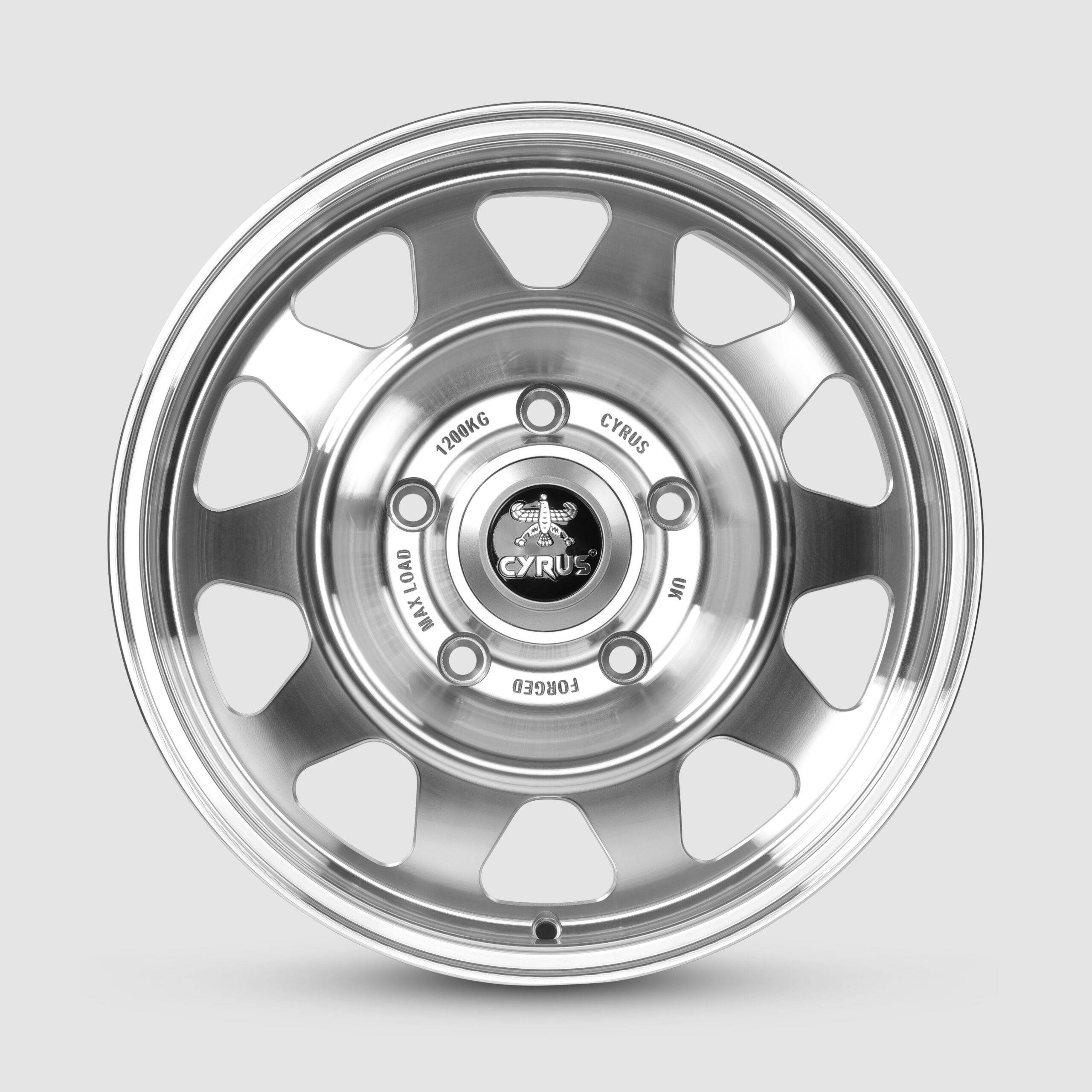 The CYRUS VULCAN wheel combines exceptional strength with lightweight performance, featuring a forged monoblock construction and a bold safari-steel–inspired design. Available in brushed aluminum, matte gray, and matte black, its engineered detailing delivers a powerful, commanding look.